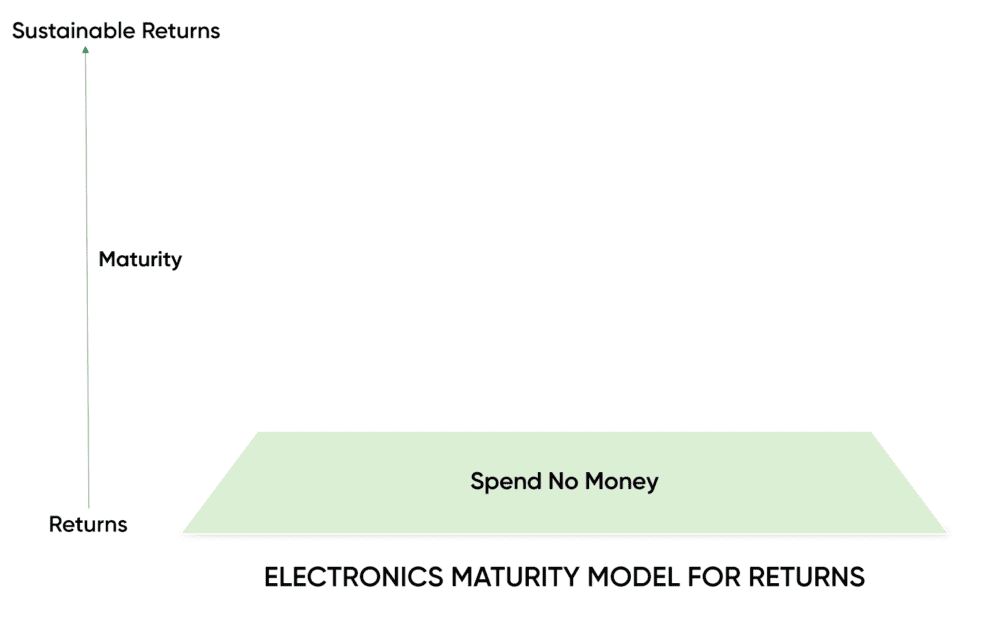 The maturity model is a pyramid and if you start at the bottom, you’ll find organizations with an approach to returns that is the farthest away from sustainable, because the primary driver is all about driving cost to zero. Decisions are made to process returns with the fastest speed and at the lowest cost.